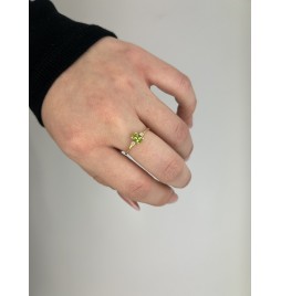 Sortija de oro amarillo con circonitas de color verde esmeralda.